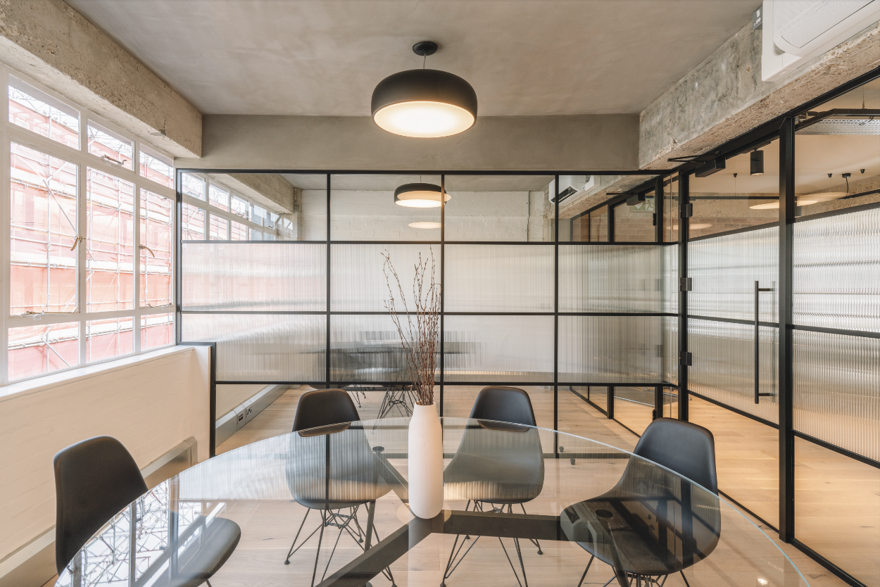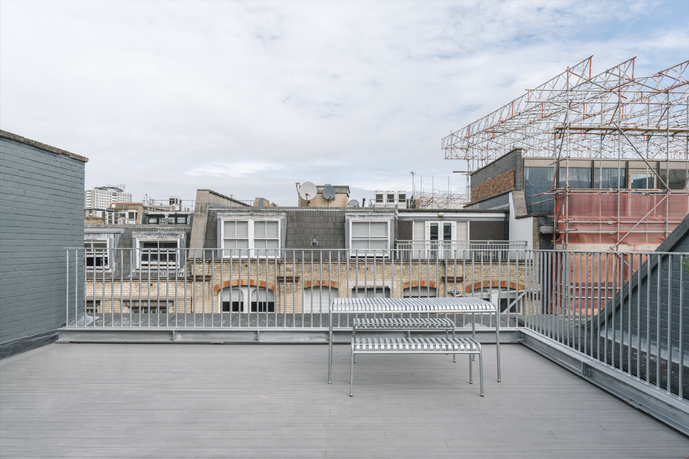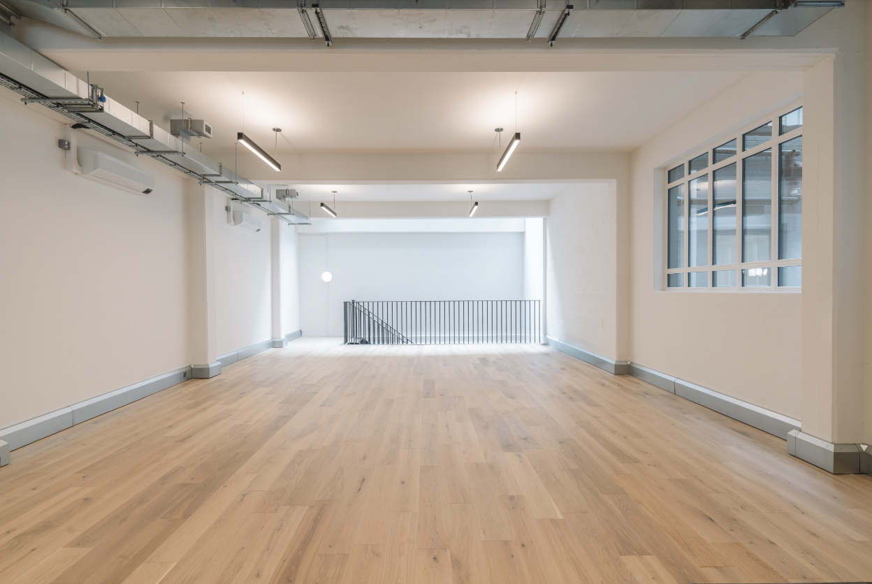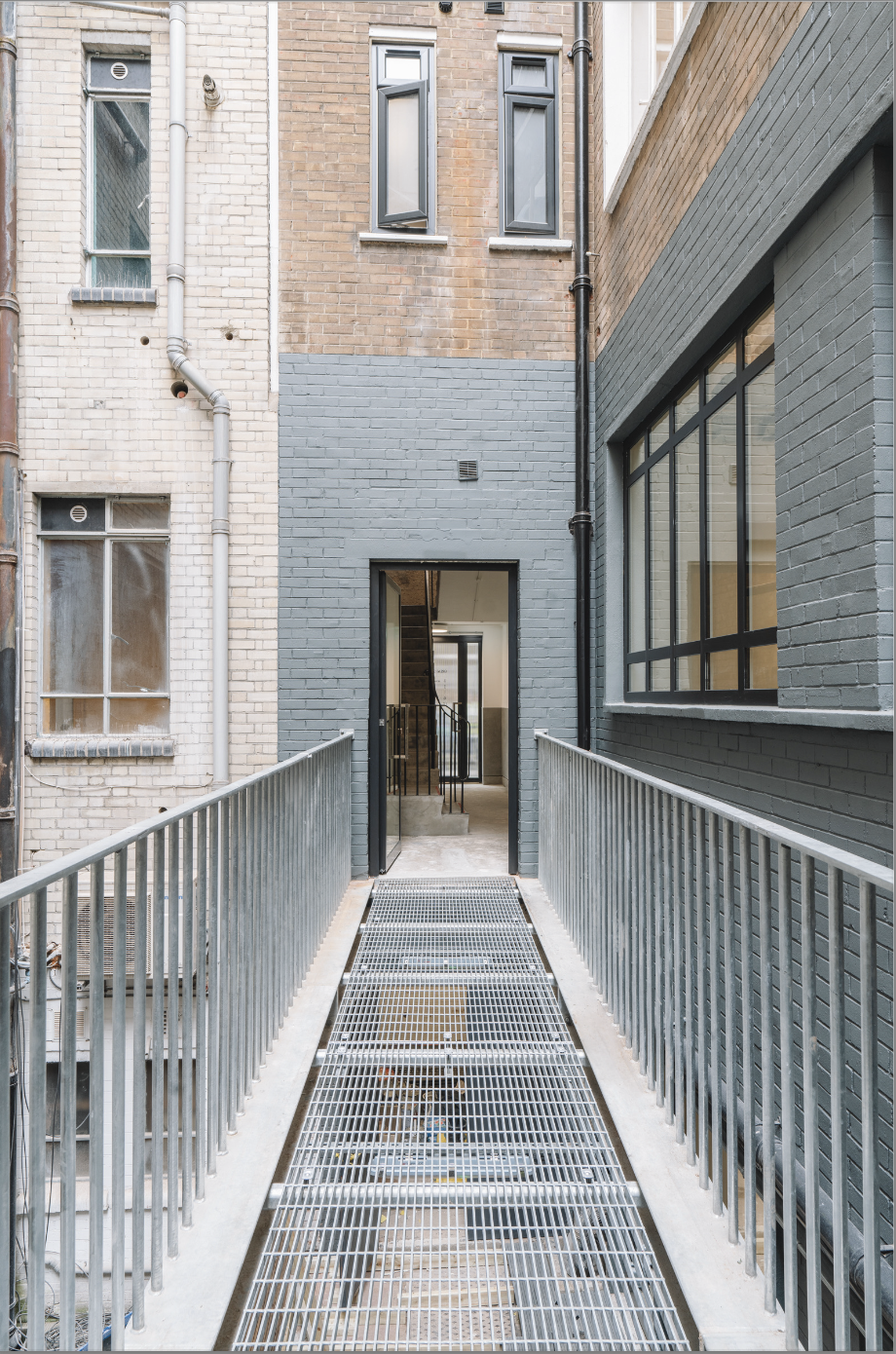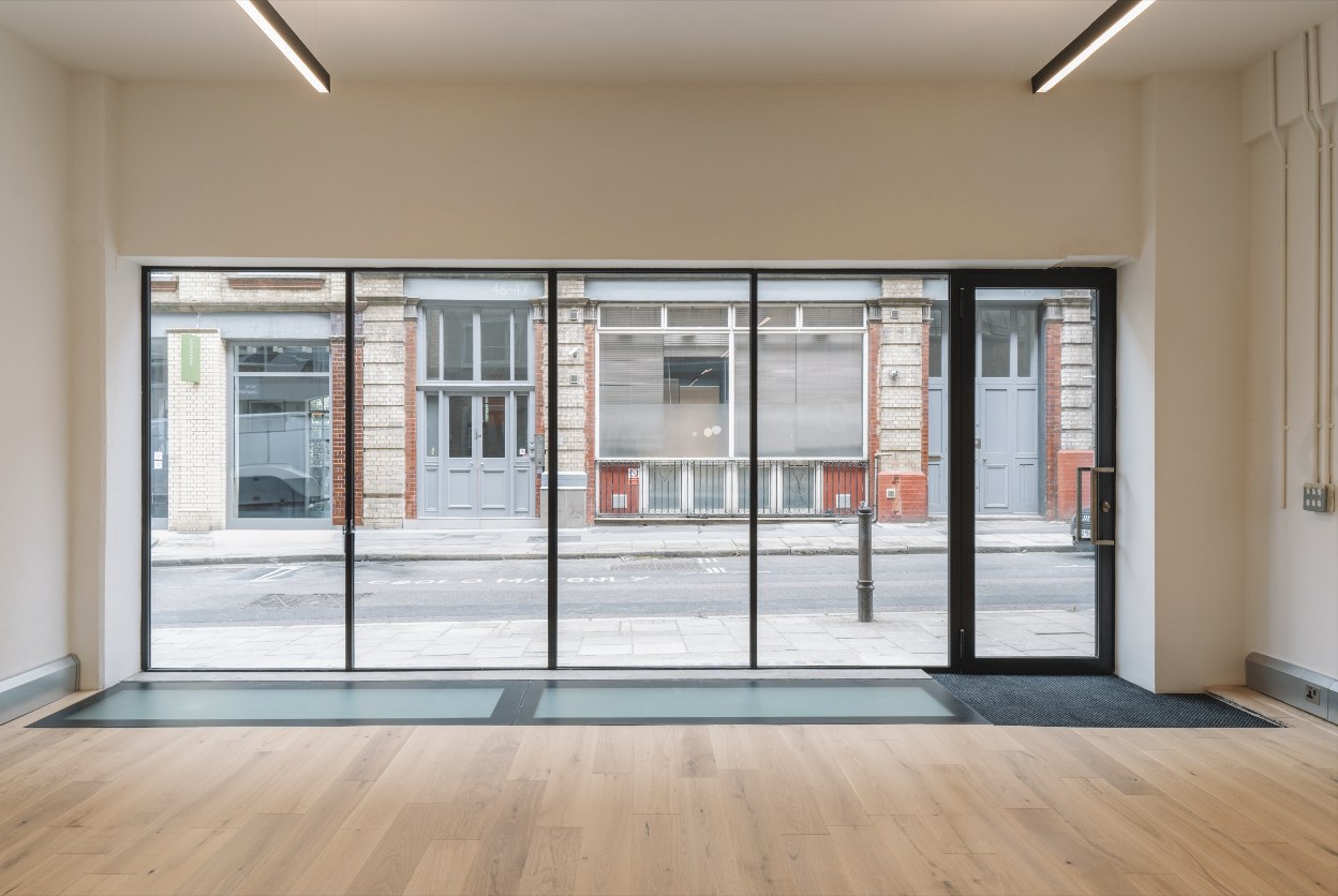 NEW DUAL-FLOOR SHOWROOM WITH AN EXPANDED SHOPFRONT70 YEARS OF BUILDING FABRIC1.5 TON CUSTOM GANTRYSHOWER FACILITIESCYCLE STORAGEEUROFOLD ELEVATOROAK STAINED DOORSSELF-CONTAINED RETAILBLACKENED STEEL STAIRCASEINDUSTRIAL STAIRCASEGALVINISED STEEL TRUNKINGENLARGED ROOFTOP TERRACECONCRETE X LIMEWASH WCsEXPOSED CONCRETE GLAZING THROUGHOUTCUSTOM FURNITUREEXPOSED SERVICESCRITTALL STYLE MEETING ROOMSCAT A+ FIT OUT